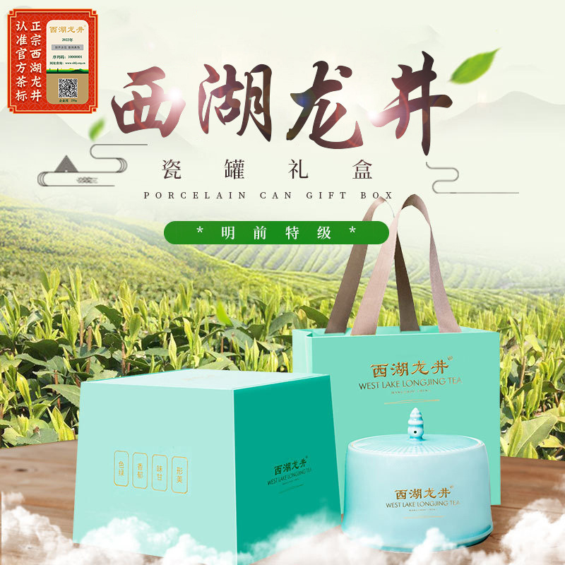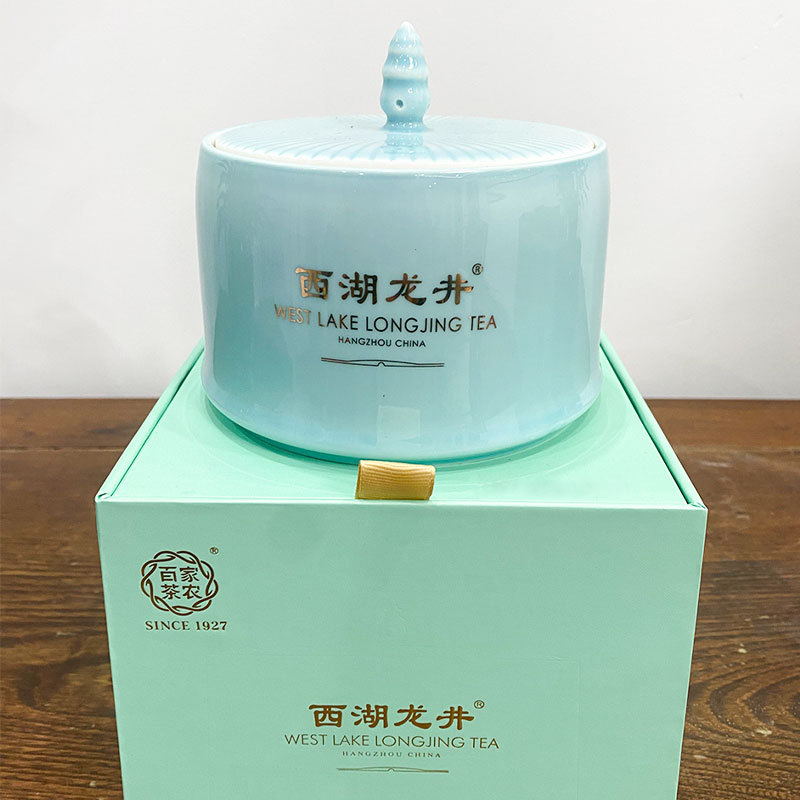 西湖龙井茶2023年新茶核心产区礼盒陶瓷罐装特级绿茶100g/罐