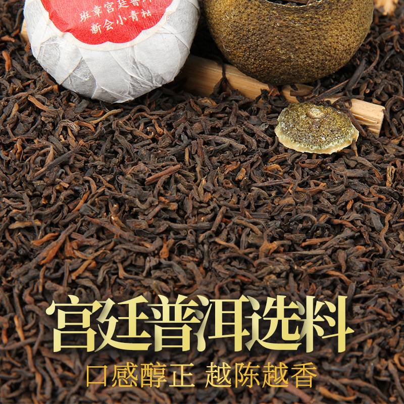 生晒新会小青柑普洱茶宫廷普洱青柑新会陈皮熟茶普洱茶桔普茶散装