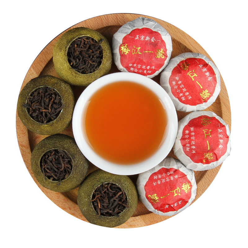 新会生晒青皮小青柑批发陈皮普洱日晒柑桔熟茶散装宫廷柑橘普茶叶