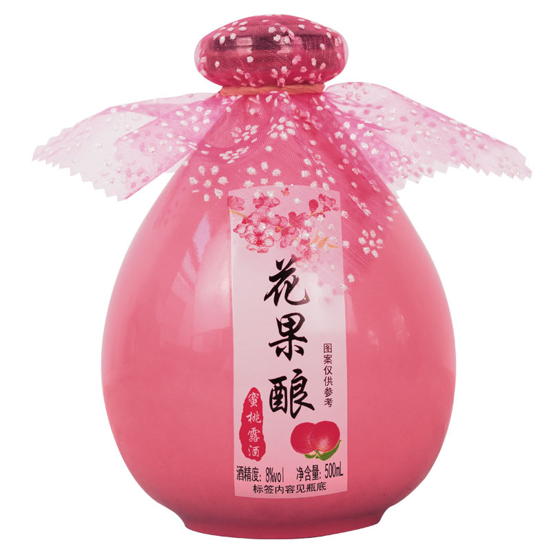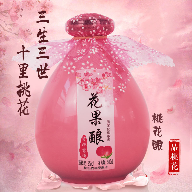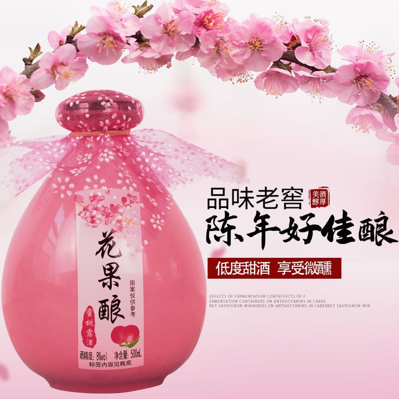 桃花酒自酿果酒青梅酒 高颜值低度古风女士500ml单瓶桃花酿甜酒