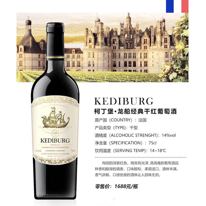 禛富城堡14度法国进口红葡萄酒赤霞珠干红红酒oem定制加工
