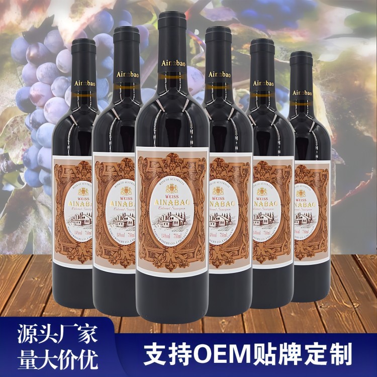 爱纳堡红酒750ml赤霞珠干红葡萄酒14度源头厂家OEM贴牌定制代发