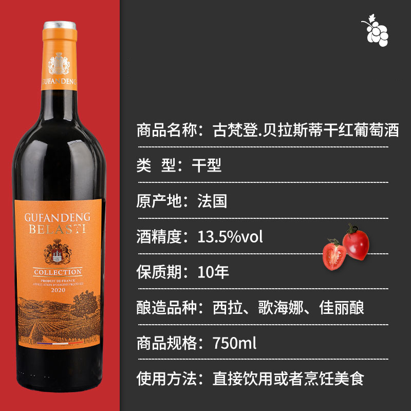 加工定制古梵登酒业红酒批发法国原瓶保税区贝拉斯蒂干红葡萄酒