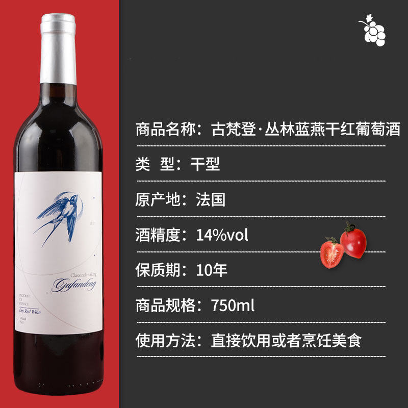 古梵登厂家批发丛林蓝燕干红葡萄酒14度电商直播进口葡萄酒红酒