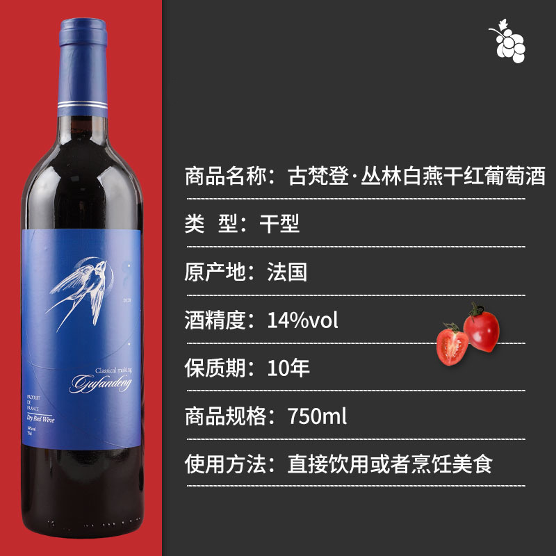 古梵登厂家批发丛林蓝燕干红葡萄酒14度电商直播进口葡萄酒红酒