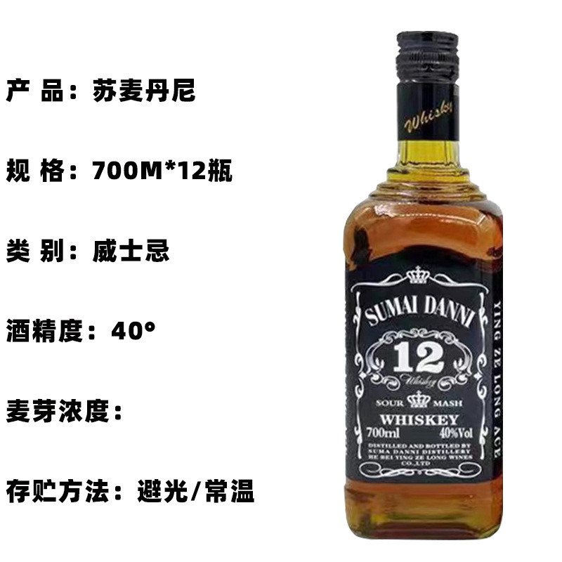 厂家酒水批发苏麦丹妮威士忌700ML酒吧KTV夜场餐饮自助餐精酿啤酒