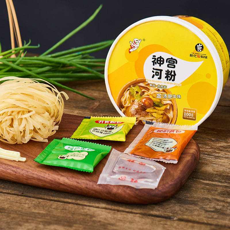 神宫泡椒牛肉味河粉桶装非油炸金汤肥牛味免煮袋装河粉一件批发