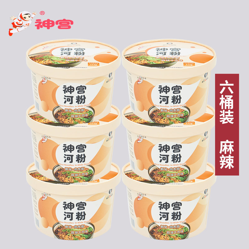 神宫麻辣牛肉味河粉正宗非油炸方便面速食12桶装泡椒即食广东米粉