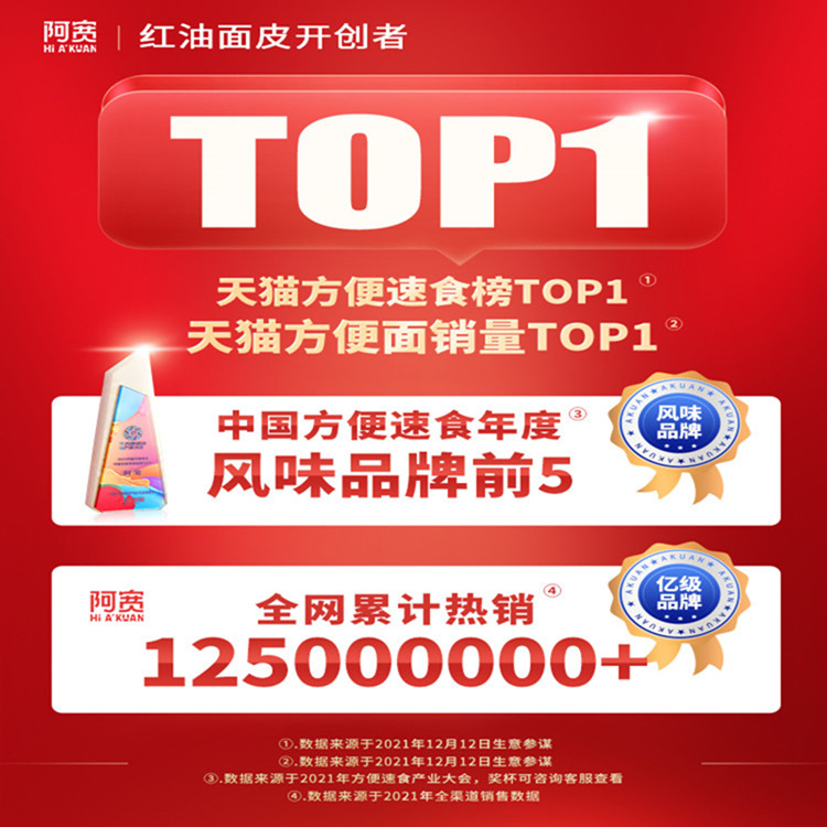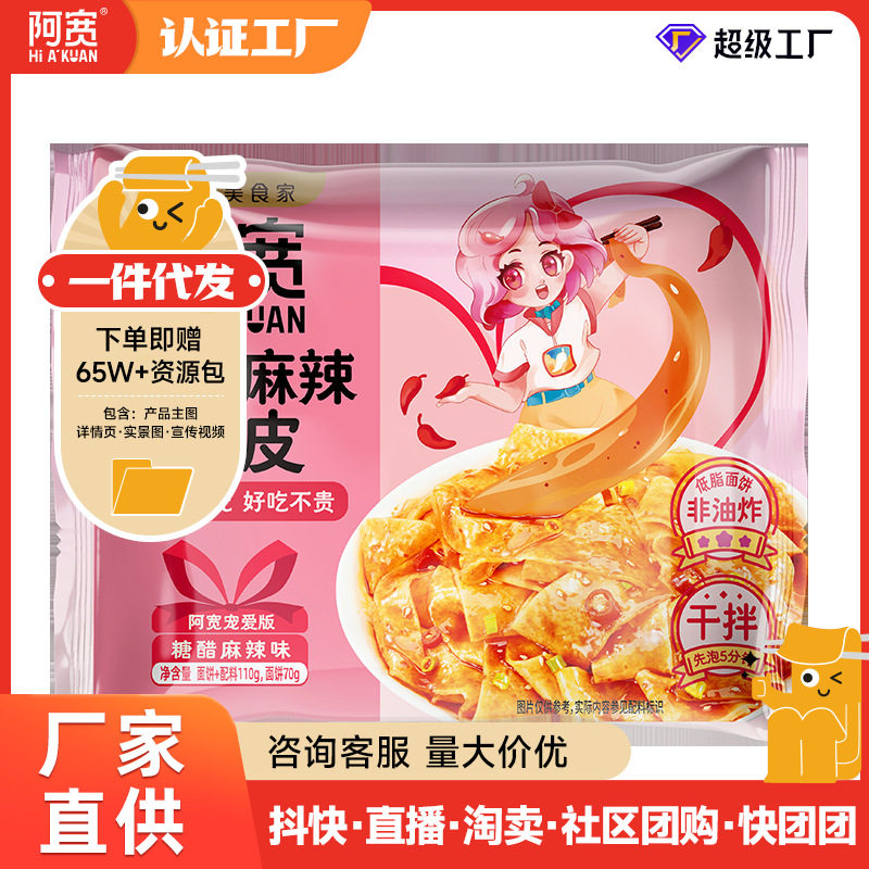 阿宽红油面皮女生宠爱低脂低钠新口味糖醋麻辣泡椒柠檬味干拌泡面