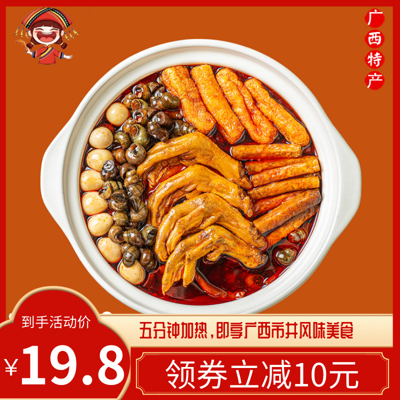 广西螺蛳鸭脚煲加热即食香辣火锅350克螺蛳粉风味田螺鸭脚螺蛳煲