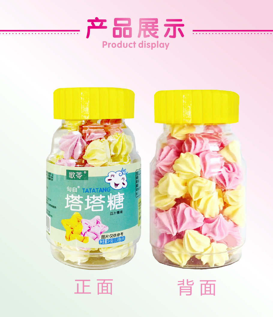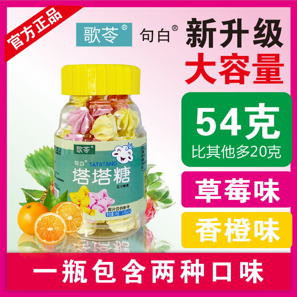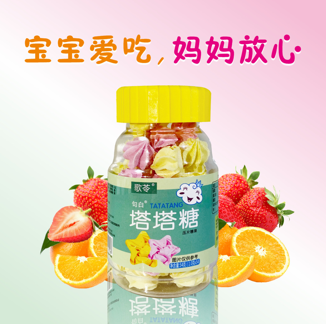 贴牌加工代发儿童零食歌苓塔塔糖草莓味香橙味54克/瓶现货