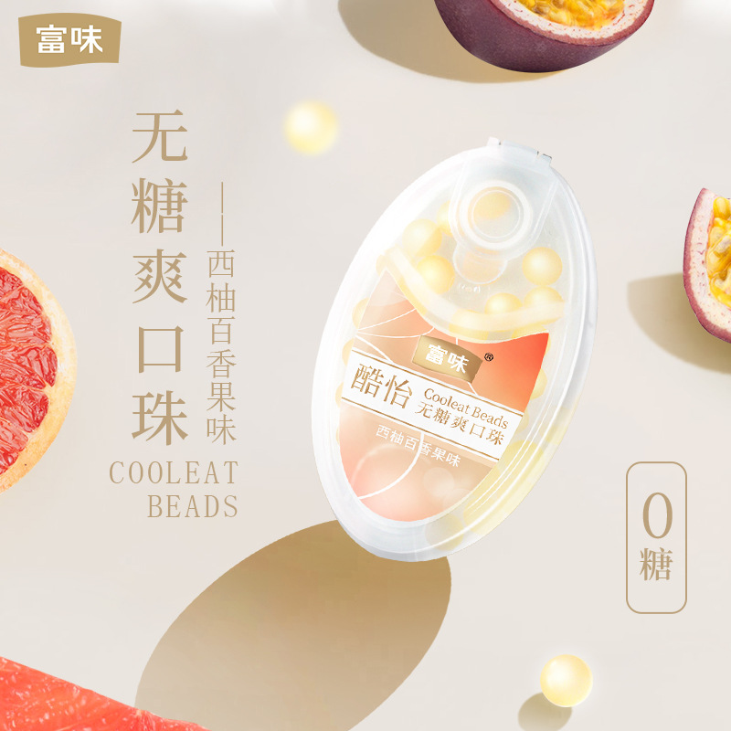 富味无糖果味爆珠糖薄荷糖 西柚百香果爆爆珠 薄荷爆珠清新2.4g
