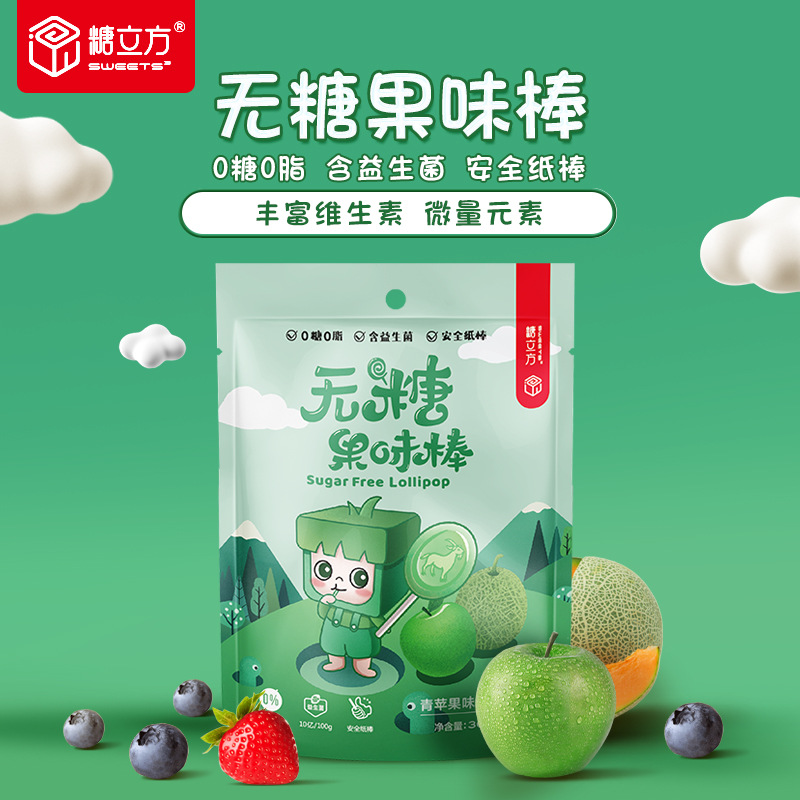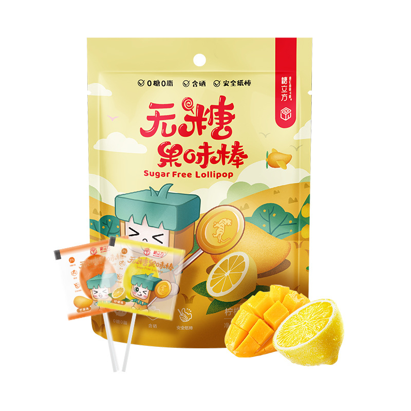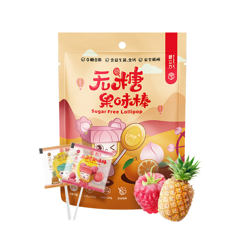 I'MINT水果味无糖棒棒糖含微量VC休闲糖果支持定制跨境袋装棒棒糖