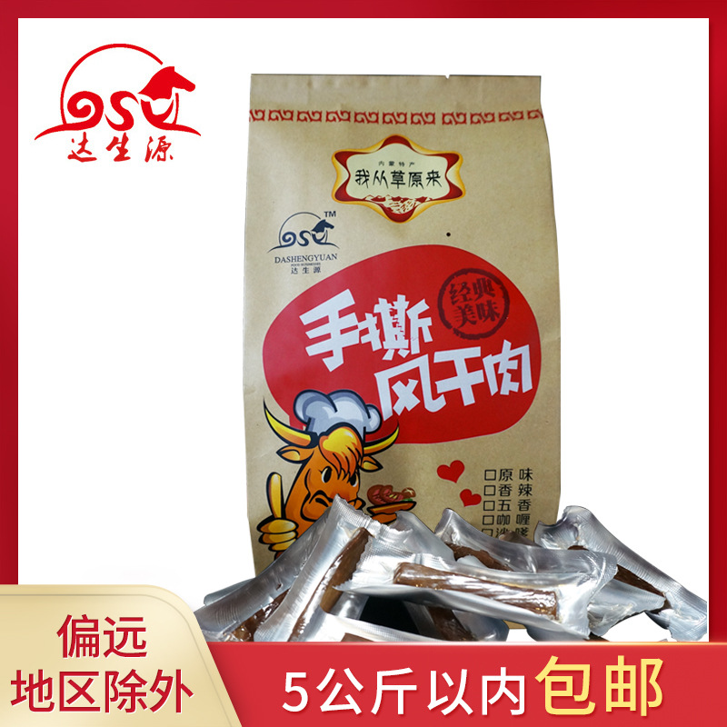 达生源内蒙古风干香辣手撕牛肉干500g真空袋装原味风干牛肉干零食