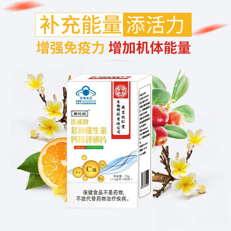 南京同仁堂多种维生素钙铁硒锌片(蓝帽)福记坊源头厂家批发代发