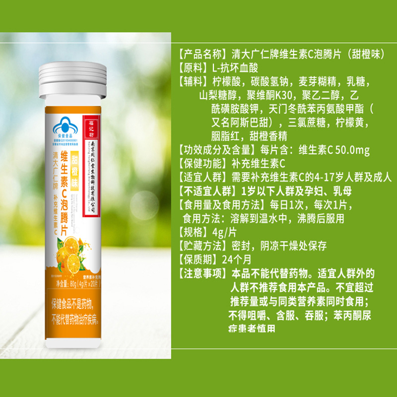 南京同仁堂 维生素c泡腾片蓝帽补充VC维C甜橙味源头厂家批发代发