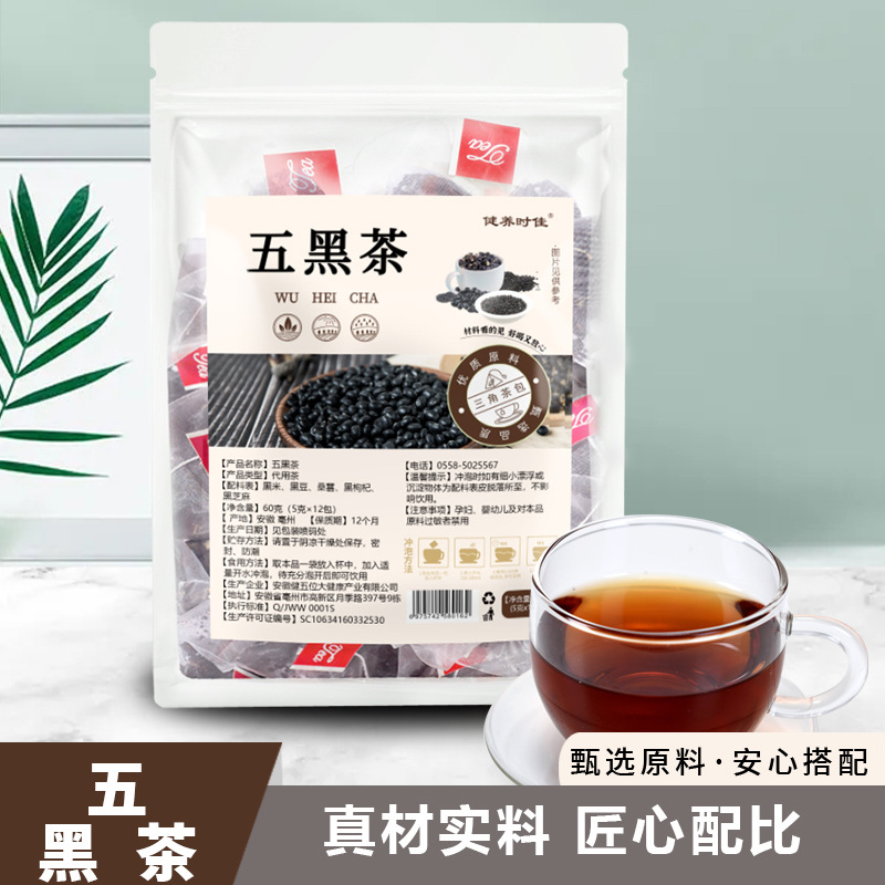 健养时佳 五黑茶 袋装三角包黑芝麻黑米黑豆黑枸杞桑葚组合批发