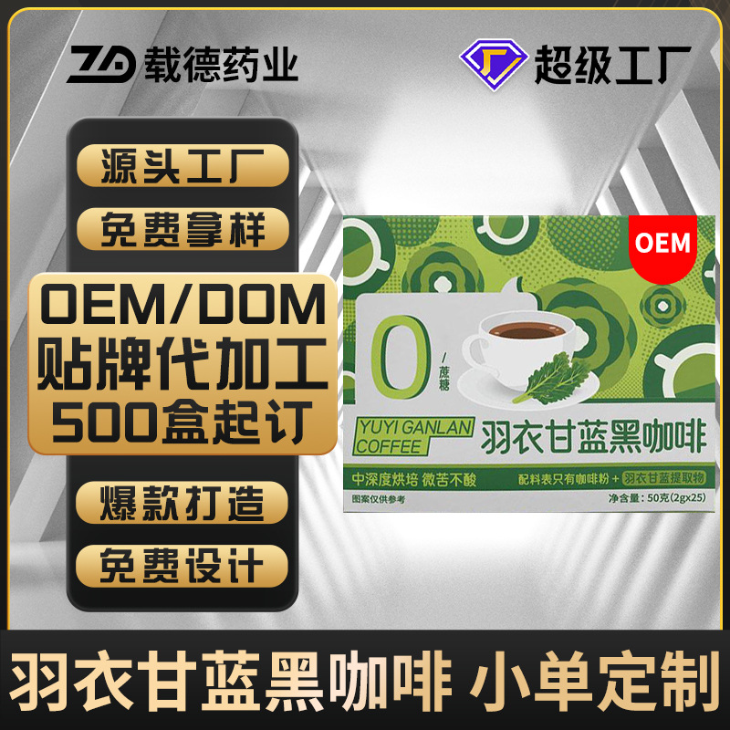 羽衣甘蓝黑咖啡定制速溶黑咖啡粉0脂肪无蔗糖青汁黑咖贴牌代加工