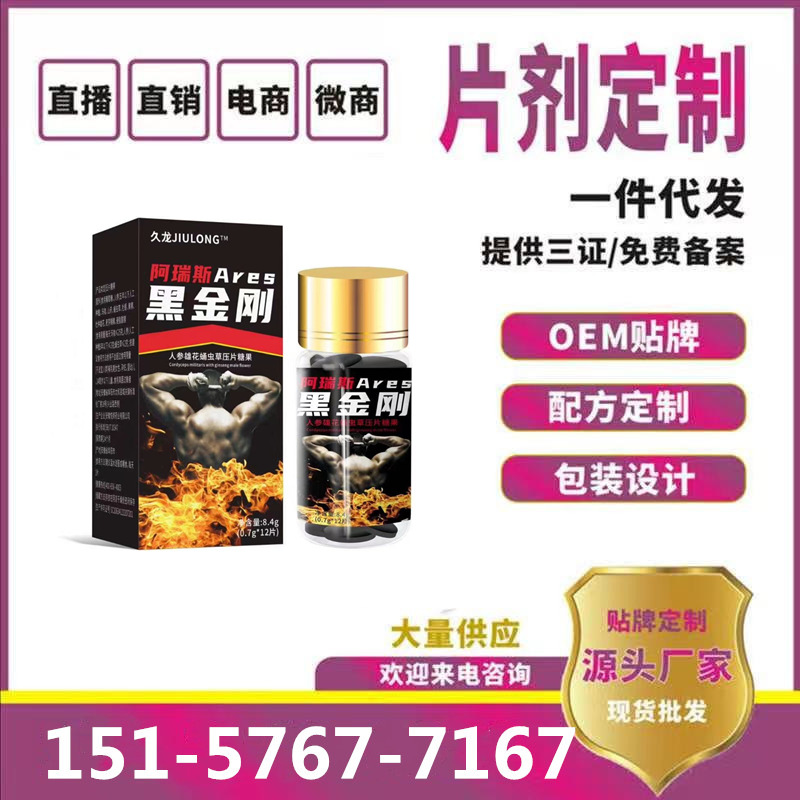 黑金刚久龙黑金刚阿瑞斯人参压片糖果药食同源12粒男性口服批发