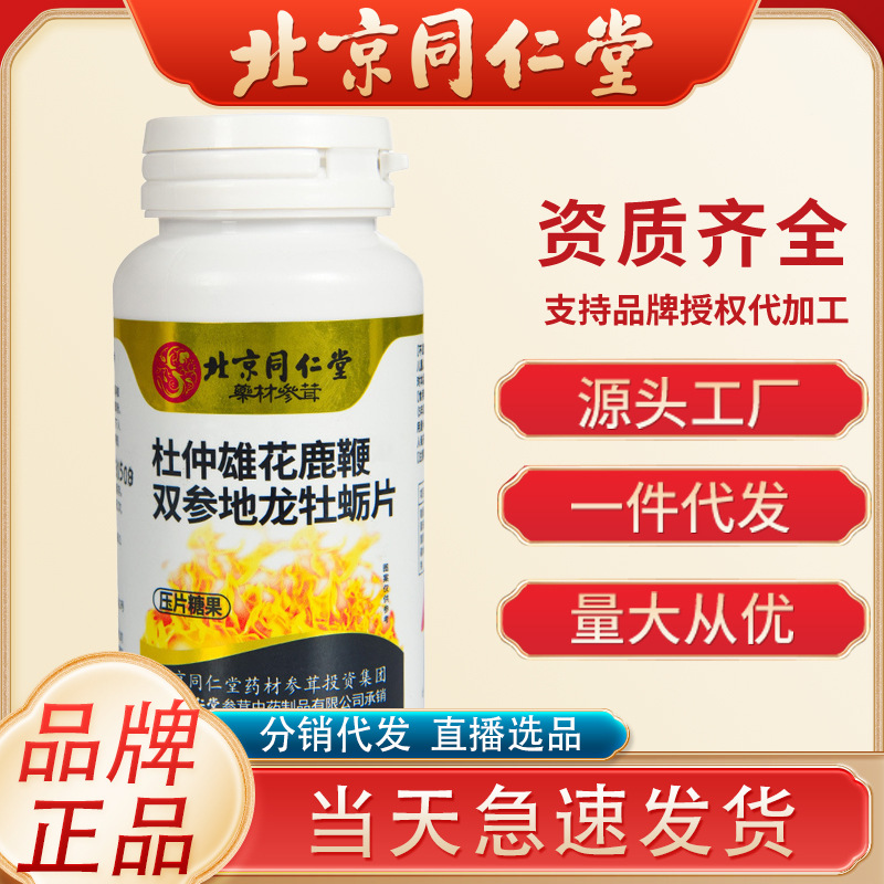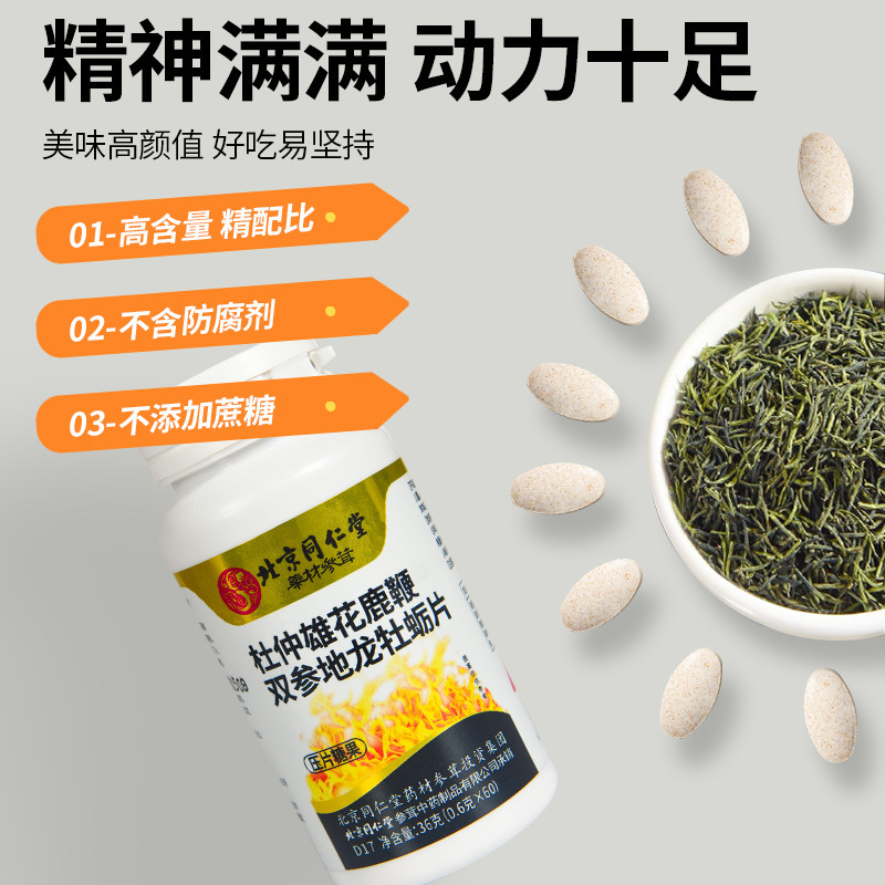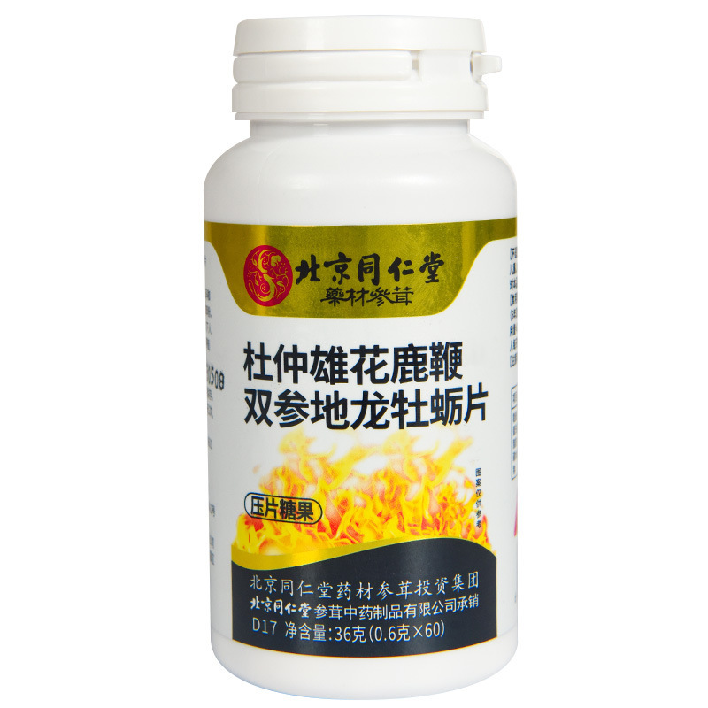 北京同仁堂杜仲雄花鹿鞭双参地龙牡蛎片36g/盒压片糖果咀嚼片代发