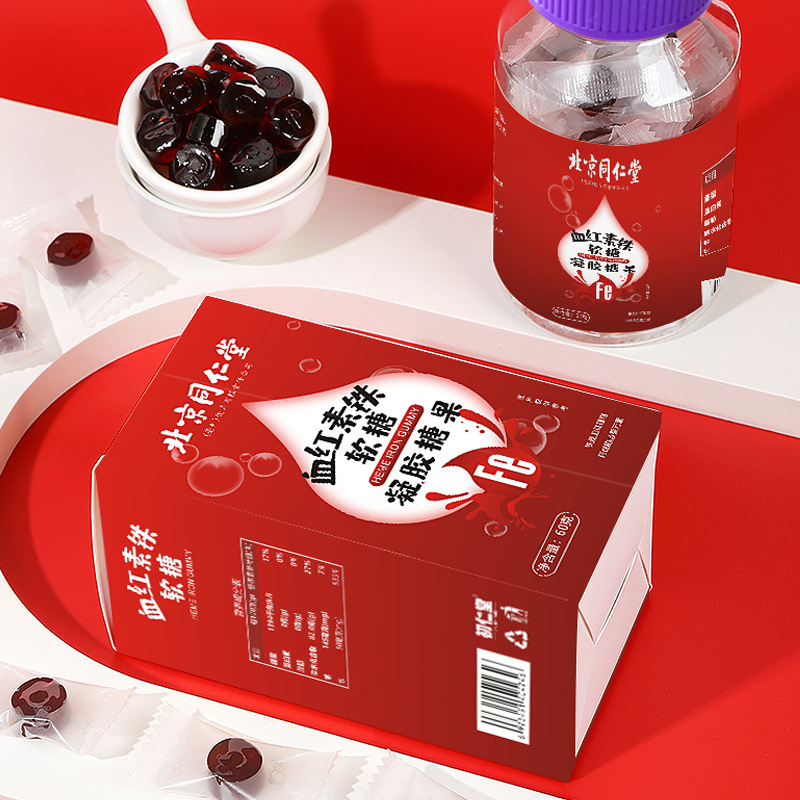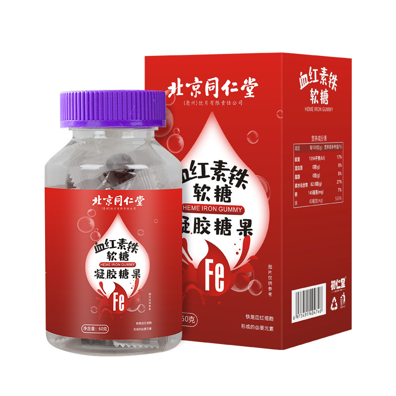北京同仁堂血红素铁软糖乏力眩晕凝胶糖果60g/盒批发一件代发现货