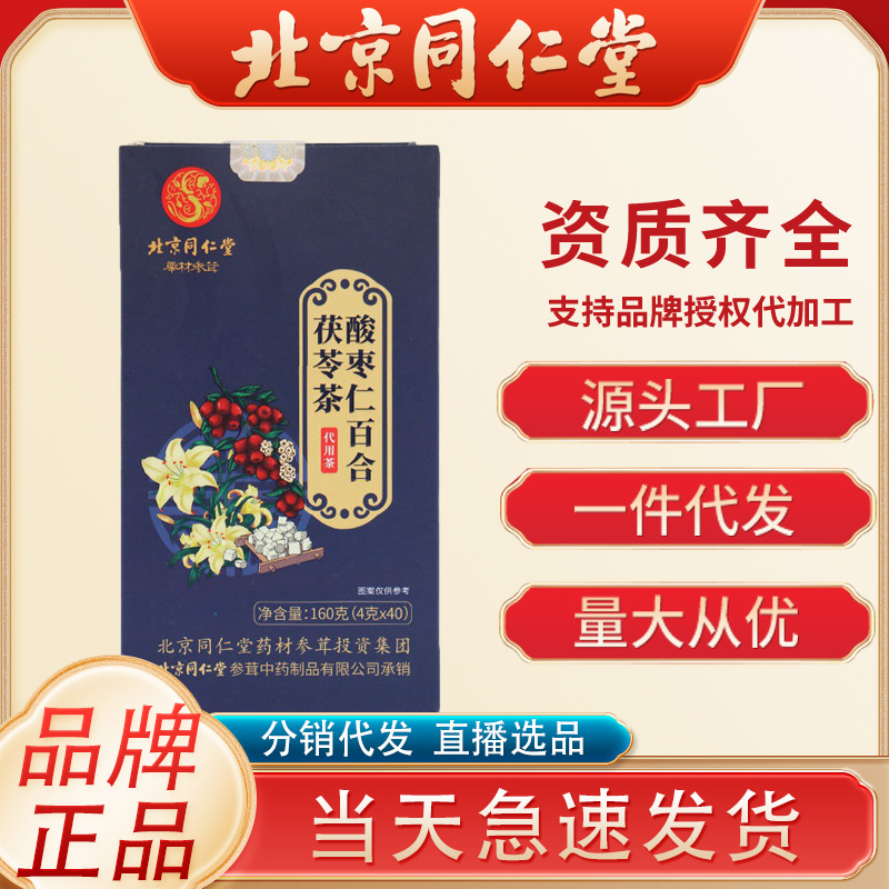 北京同仁堂酸枣仁百合茯苓茶160g盒装代用茶花草茶睡眠失眠睡觉茶