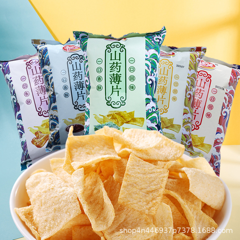 当前位置:首页>>供应>>烘焙|膨化|糖>>山药片薄片88g整箱40包脆片品味方圆山药薯片学生休闲小零食定制