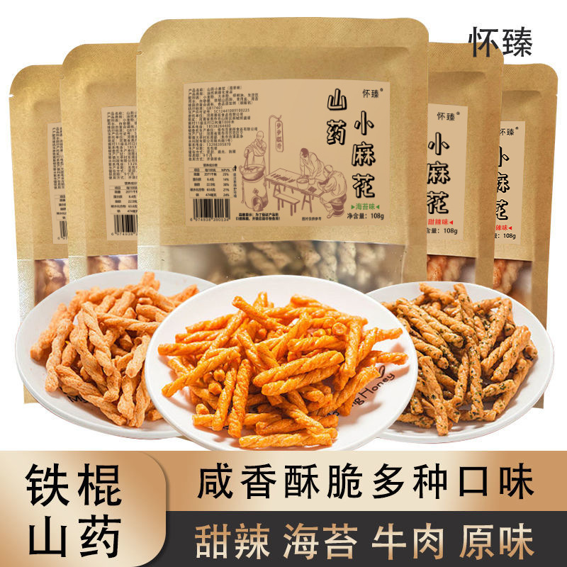 怀臻铁棍山药手工小麻花108g办公室休闲网红零食袋装厂家整箱批发
