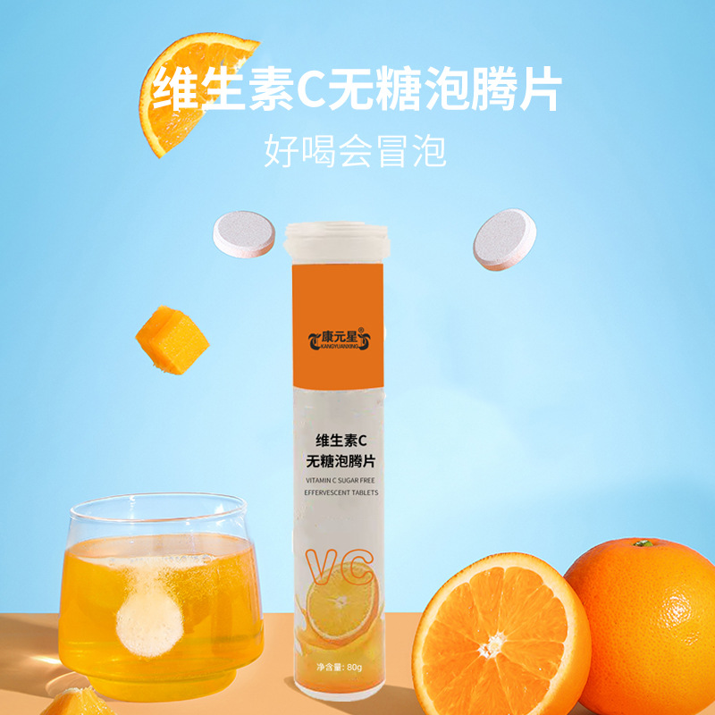 维生素C无糖泡腾片山东宇康莱代加工定制OEM厂瓶装80g无糖泡腾片