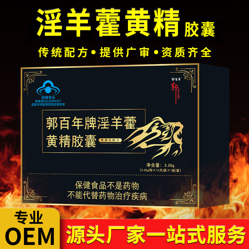 当前位置:首页>>供应>>保健食品>>保健食品>>郭百年牌淫羊藿黄精胶囊男性保健品蓝帽 源头厂家贴牌定制代工OEM