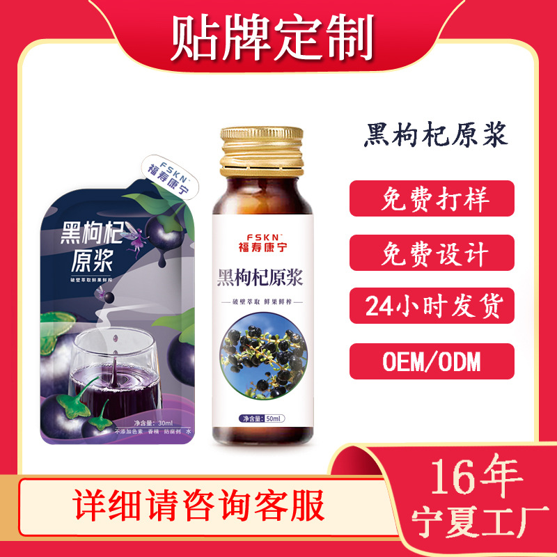 宁夏黑枸杞原浆贴牌代工OEM定制源头厂家青海黑枸杞原浆汁酵素饮