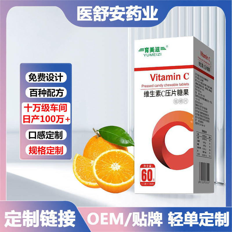 厂家批发维生素c vc咀嚼片成人儿童补充维生素c压片糖果OEM贴牌