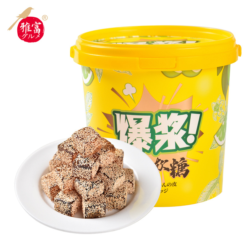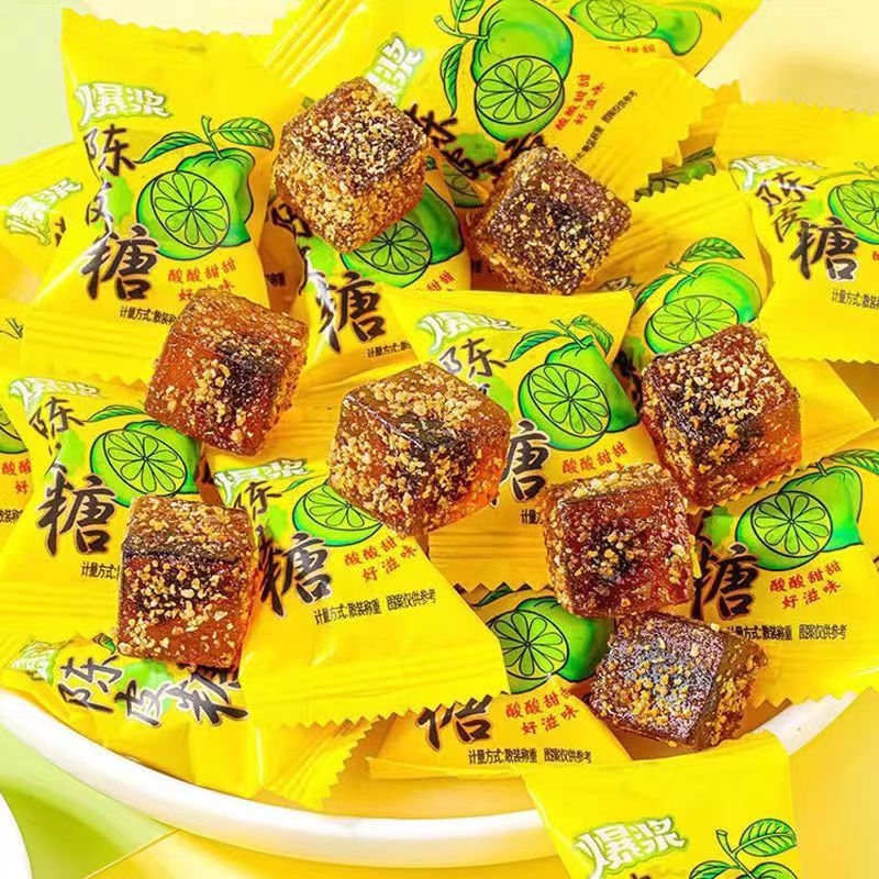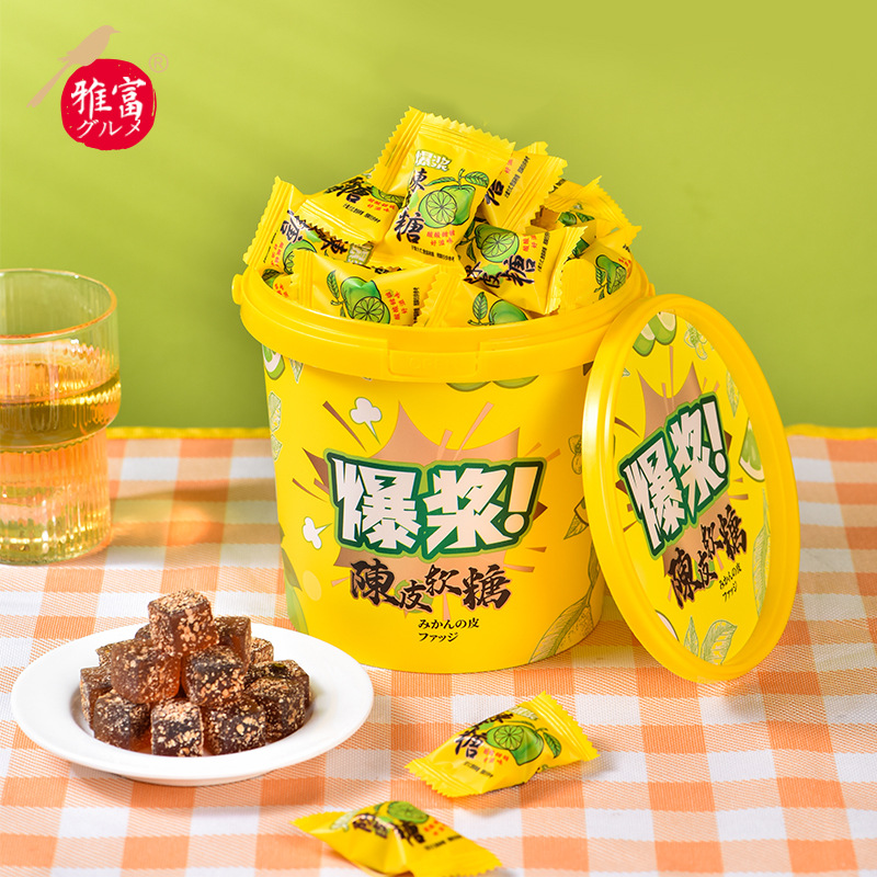 雅富 网红爆浆陈皮糖桶装糖果夹心陈皮软糖散装零食大量批发