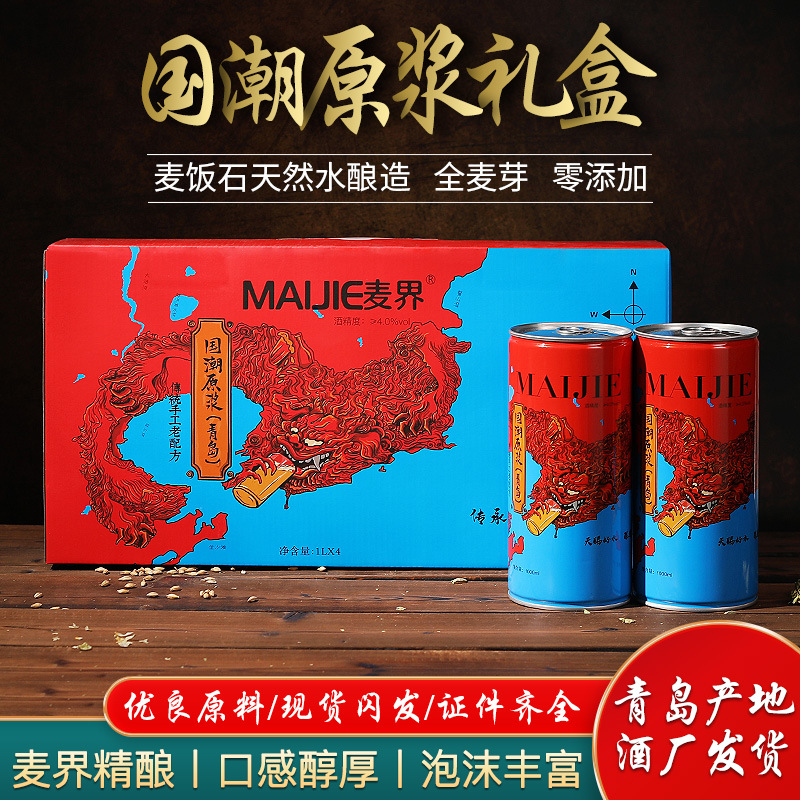 青岛特产麦界全麦艾尔啤酒礼盒装1L*4罐原浆精酿啤酒整箱批发