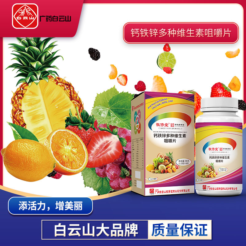 - 广药白云山敬修堂钙铁锌多种维生素咀嚼片压片糖果源头工厂直销