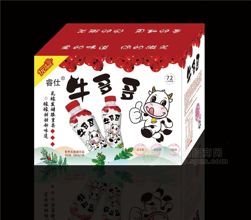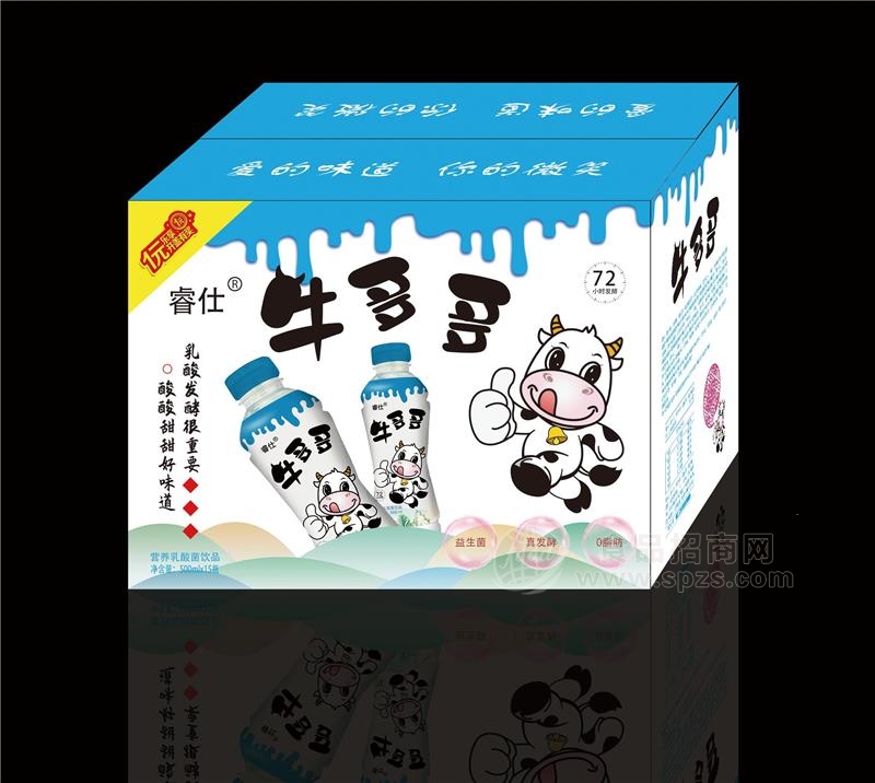睿仕牛多多营养乳酸菌原料采用新西兰优质的奶源和瑞典菌种,优质奶源造就过硬品质,产品经过72小时慢发酵,好消化吸收快。在包装上,“睿仕”牛多多乳酸菌产品包装抛弃传统乳酸菌千篇一律的包装设计,外观高端大气,图案及色彩搭配独具匠心,具有很好的产品辨识度和外观吸引力,差异化包装引导500毫升乳酸菌空白市场, 包装新颖有创意自带网红特性,寓意为你点赞,符合当下流行趋势,深受主流消费人群喜爱,口感酸酸甜甜适合儿童,老、中、青各类消费群体,从而促进终端销售。