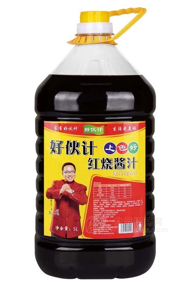 好伙计酱油由笑星句号代言,为产品质量背书,摆在货架上也凸显出和其他产品的不同,提高了辨识度,让消费者更加信任产品,放心购买,*终提高销量。这款红烧酱汁,上色好,味道佳经销商不容错过。