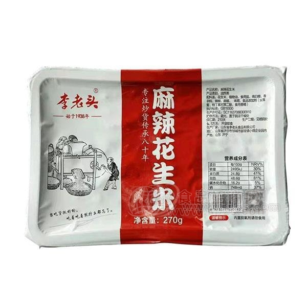 山东省李老头食品股份有限公司主要从事花生米以及其它农副产品深加工。集产品研发、生产、销售于一体,总投资5000万元,占地30000平方米,建筑面积8600平方米,年销售额达5000万元。 公司依托花生生产基地山东丘陵,自然条件优越,交通便利。多年来公司专注研发生产五香、麻辣花生米、油炸花生米、脱皮花生米、花生、核桃、瓜子、玉米等系列农产品。