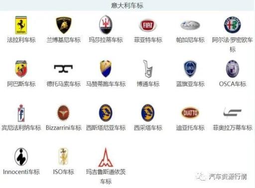 意大利汽车品牌中,几乎常见的标志都是豪华品牌,包括法拉利、兰博基尼、玛莎拉蒂、阿尔法罗密欧等。