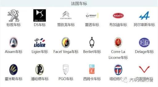 法国汽车品牌中,最常见的标志有标致、雪铁龙、雷诺和DS,其中超跑品牌布加迪也是法国的,现在是大众集团收购了它。