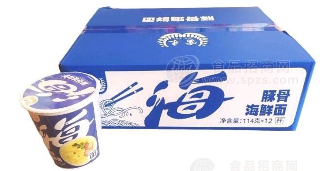 在众多新品中,如何瞬间抓住消费者眼球,颜值十分重要,富来方便面,采用114g杯装,一箱有12杯,箱体上字体超大的“海”“牛”“韩”文字,凸显产品卖点,从远处便可吸引消费者目光,而杯体上同样的字体陈列优势突出,助力产品快速动销。