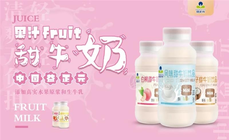 「益正元甜牛奶」果汁加牛奶,低脂低糖0负担137℃高温灭菌,保鲜更彻底五种口味满足不同渠道来自家庭、送礼的需求十分旺盛
