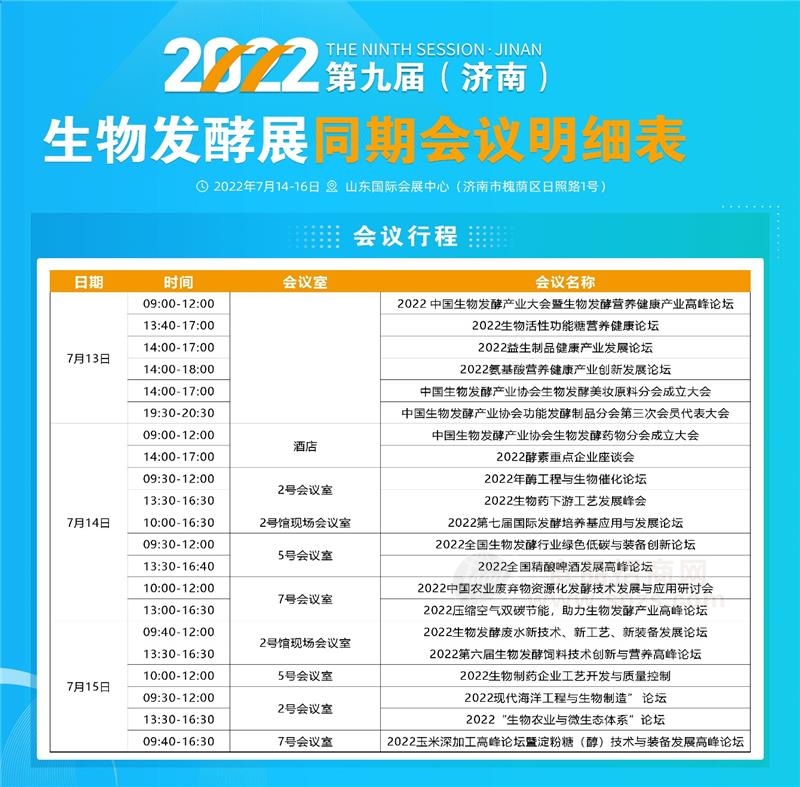 上海兆光生物工程设计研究院,展位号:2号馆A35上海兆光生物工程设计研究院,国家级高新技术企业,全球淀粉水解专家,中国酶法制糖工业的脊梁,连续喷射液化酶法制糖技术获中国轻工科技进步二等奖,多项技术广泛应用到:果糖、结晶果糖、低聚果糖、异麦芽低聚糖、结晶麦芽糖醇、高麦芽糖浆、麦芽糊精、结晶葡萄糖、低聚木糖、阿拉伯糖、菊粉、赤藓糖醇、木糖醇、山梨醇、味精、赖氨酸、柠檬酸、L-乳酸、衣康酸、抗生素、活性干酵母、黄原胶、乙醇、变性淀粉等领域。中国玉米深加工国家工程研究中心、诺维信(中国)投资有限公司、美国玉米制品国际公司(CPI)、罗盖特公司(ROQUETTE)、印尼PT Sorini Agro Asia Corporindo,Tbk、泰国P.S.C. Starch Products PCL和泰国C.S.C.FOODS(THAI LAND)CL.LTD、中粮集团、嘉吉公司、上海好成、长春帝豪、广州焕发、广东星湖、苏州高峰、湖北汉科、鲁洲集团、诸城东晓、西王集团、山东保龄宝、福田药业、山东龙力,汇源果汁山东福宽公司、河北骊骅、河北健民、河北玉峰、河南飞天、河南天冠、河南巨龙、梅花集团、莲花味精、菱花集团、川化味之素、安琪酵母、鲁南制药、石药集团、鲁抗制药、潍坊盛泰药业、宁夏昊凯、甘肃荣华生化集团、淄博中轩、嘉吉黄河龙、台湾台南县正裕麦芽厂等二十二个行业2000多家单位采用上海兆光研究院的技术或设备;BIO CHIAN 2022生物发酵产业综合贸易平台!2022生物发酵展(济南),于2022年7月14-16日在山东国际会展中心(济南市槐荫区日照路1号)召开,目前已成为生物发酵产业一年一度行业盛会,展品覆盖、生物工程、发酵工程、细胞工程、蛋白工程、医药、生物医药(抗生素、疫苗等)、生物饲料、生物农药、生物肥料、生物化工、发酵产品(氨基酸及有机酸、淀粉及淀粉糖、酵母及衍生物、酶制剂、发酵功能制品)、食品饮料、酒等生产加工所需的各种新产品、新技术、新装备、新工艺,打造集“展示、商贸、学习、交流”为一体的全产业链,致力于生物技术产业智能制造一站式解决方案。生物产业市场迅速崛起,BIO CHINA 2022助力企业发展新方向本次展会设四大特色展区:“精酿啤酒与技术设备展”、“玉米深加工产品与技术装备展”、“制药机械与包装设备展”、“生化仪器、实验室设备与耗材”、展会面积约40,000平方米,800余家行业企业参与,展会将共享超过45000名专业买家,为生物技术产业创新发展提供助力,为生物发酵产业与上下游产业搭建了一个技术交流、促进合作、扩大上下游贸易、提高品牌和企业知名度的平台。同期举办30多场行业论坛,300多位大咖云集华东理工大学,魏东芝上海勃林格殷格翰药业有限公司首席工程师,倪坚宏天俱时集团智能制造装备事业部总经理,田林升苏州蓝晓生物科技有限公司副总经理,郑鹏涛嘉应学院生命科学学院博士,王庆中国农业大学动物科技学院教授,斯大勇聊城大学农业院中国海洋大学博士后,马青山安琪酵母股份有限公司,李啸博士河北科技大学教授,徐亲民华东理工大学生物工程学院教授,储炬华东理工大学生物工程学院副教授,夏建业天津科技大学生物工程学院院长,罗学刚齐鲁工业大学生物工程学院教授,赵林江南大学食品学院教授,洪雁专家学者(持续更新中)··········