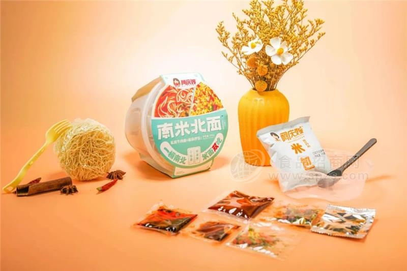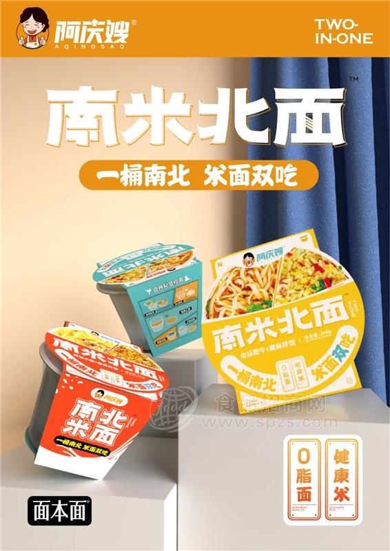 一桶南北,米面双吃!阿庆嫂南米北面,率先以南北饮食文化融合为突破口,打造米面共食的产品特色。产品上有健康米、下有0脂面,一桶就能实现米面双吃,满足Z世代消费者两样都想要的需求,让他们瞬间获得双倍的满足和快乐!