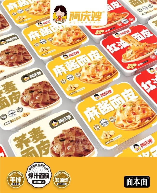 除了面皮,清爽不腻,好吃开胃的拌面是适合夏季的另一款方便食品。阿庆嫂全新拌面,主打三种口味,不仅颜值亮眼,且色香味俱全,只需一泡一冲一拌,即可轻松享受美味。
