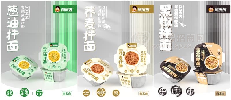 葱油拌面,包装清爽亮眼吸睛,葱味浓郁,口感劲道;黑椒拌面,黑橙搭配轻奢高级,椒香浓郁,香辣怡人;轻食伴侣黑鸭味荞麦拌面,配色简洁,0脂肪无负担,怕胖群体的健康之选。