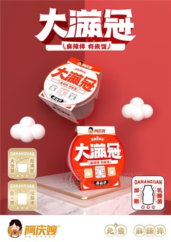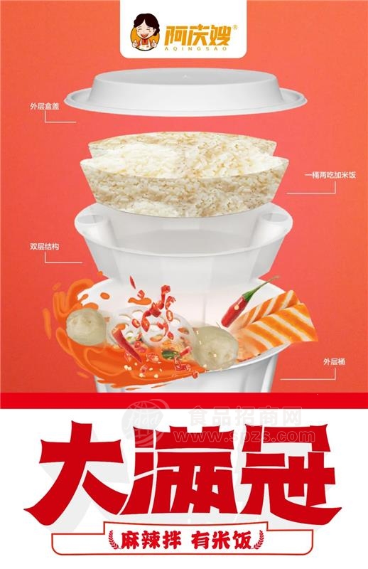 阿庆嫂聚焦吃货无法抗拒的美味,推出大满冠麻辣拌,不仅有土豆片、海带结、豆皮、丸子……种类丰富,分量十足的蔬菜,还外加一份营养健康的低脂米饭,再加上阿庆嫂*具特色的乳酸菌,这满足感谁能扛得住!