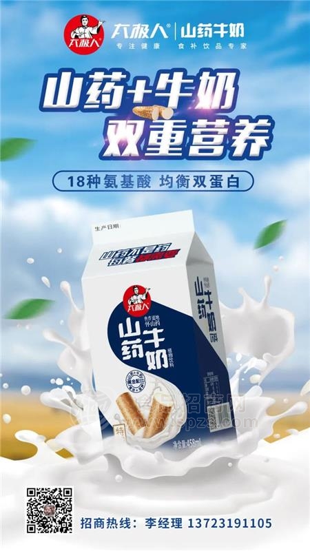太极人山药牛奶中国食补营养饮品专家低投入 高利润 强支持掘金千亿乳饮赛道!