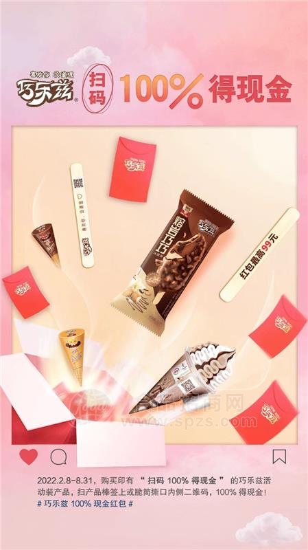 值得一提的是巧乐兹的物码营销赋能,借助一物一码的棒签活动,进行品牌私域小程序运营,深度挖掘用户价值,提升品牌营销效率。一方面,巧乐兹连续七年开展红包活动,以浪漫有趣的棒签文案吸引消费者眼球,引发粉丝线上分享及讨论;另一方面,巧乐兹以红包为利益点,吸引消费者扫描印刷在棒签上或脆筒撕口内侧的二维码,100%得现金,让消费者获得极大的“满足感”和“幸福感”,提升产品复购率;同时,巧乐兹借助物码活动,引流消费人群到“巧乐兹Chocliz”私域小程序平台,实现品牌私域流量蓄水,并借助线上商城打通物码营销闭环,更是借助私域平台小程序互动、线上会员体系建设、不定期商城活动等多种有效的私域运营手段有效激活粉丝,实现用户价值的挖掘。