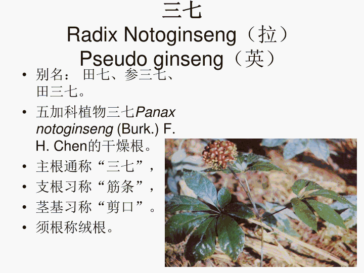 三七主产于云南,与东北的人参齐名,同属于五加科植物,药用部位为地下根茎,从作用原理分析,根类药物的升降特点是主升浮的,它需要营养地上的部分,升性主阳,阳在五行中主木火,木性主升,肝气属木,主升发条达,三七形质符合肝木的升浮,药性升浮属温性,外皮色黄,内部色青,青色入肝,黄色入脾,味道甘苦,甘则入脾,甘甜可滋脾气,三七有补气的作用,这一点类似人参。三七,能生津补气——《药笼小品》